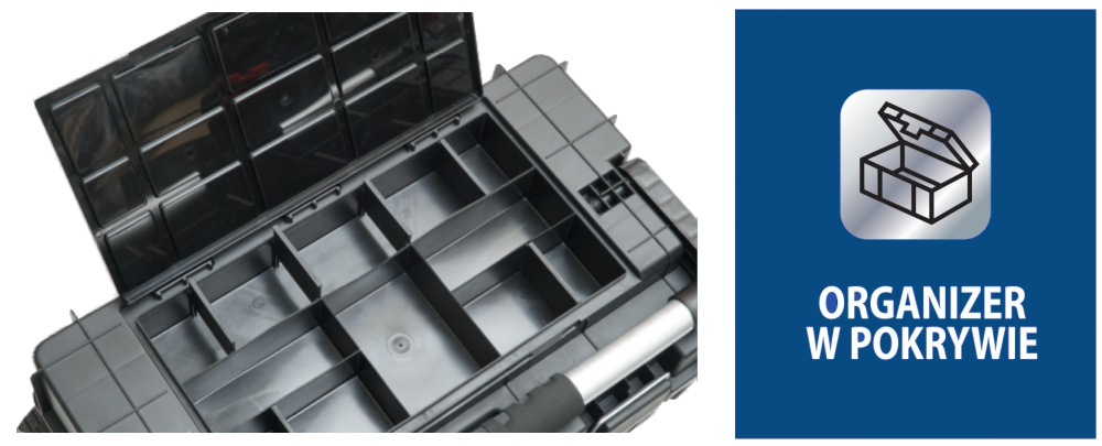 - Organizer w pokrywie do segregowania wszelkiego rodzaju śrubek, wkrętów itp.