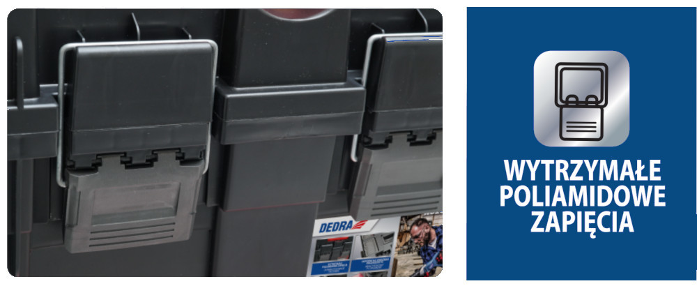 To podłużna, mobilna skrzynia narzędziowa typu Heavy Duty. Stworzona do ciężkich, wymagających zadań. DEDRA N0210 w odróżnieniu od pozostałych skrzynek serii N02XX zbudowana jest w formie jednej pojemnej skrzyni.