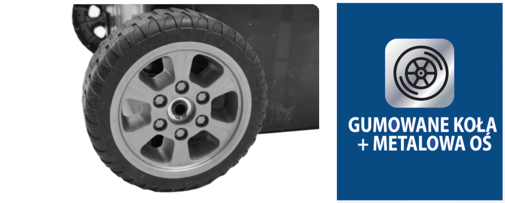 - Plastikowe koła pokryte zabezpieczającą warstwą miękkiego tworzywa